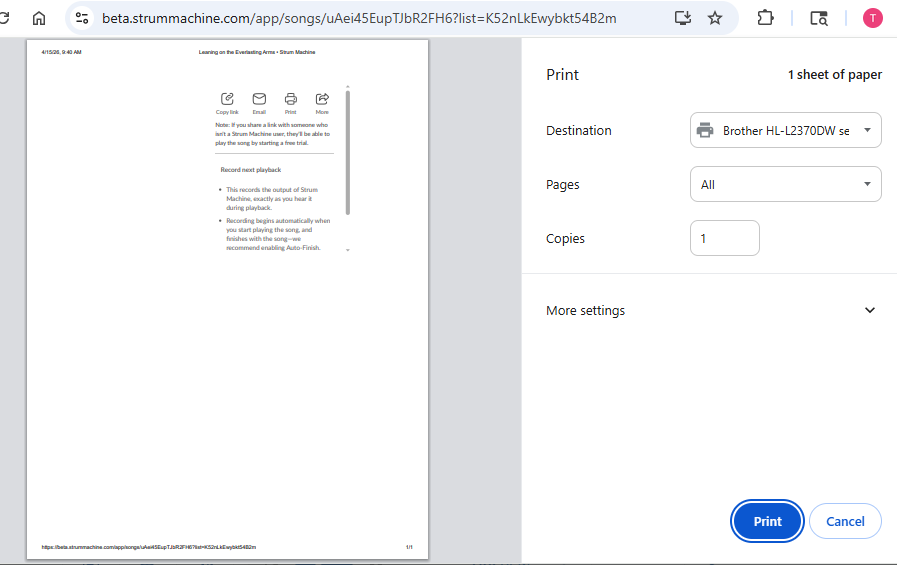 Not sure if I should post bugs here for Beta. But get the following when I attempt to print chords for a particular song out of web Chrome browser.